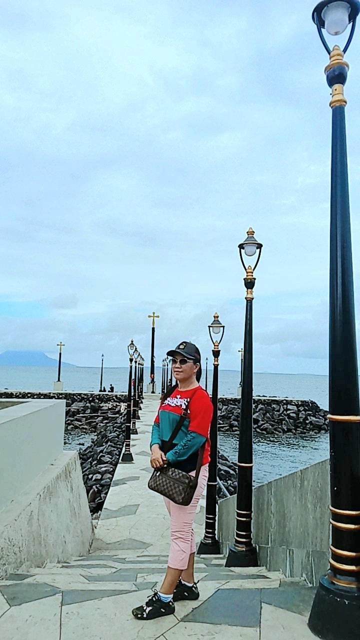 • Mengambil foto dengan latar belakang pemandangan pantai yang indah