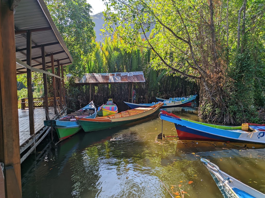 - Berperahu menyusuri sungai: Nikmati sensasi berpetualang menyusuri sungai yang diapit tebing-tebing karst yang menjulang tinggi.